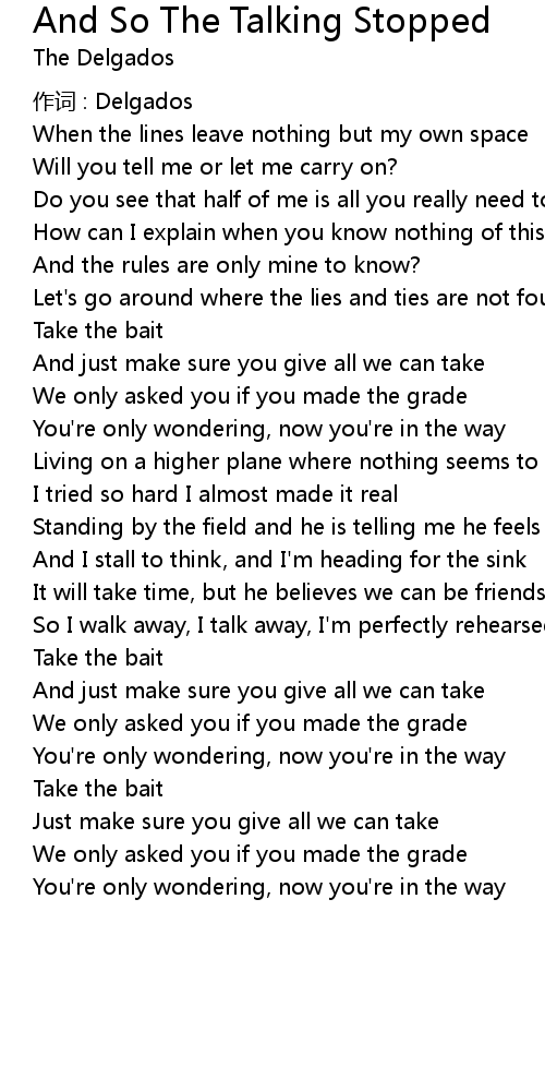| 作词 : Delgados | |
