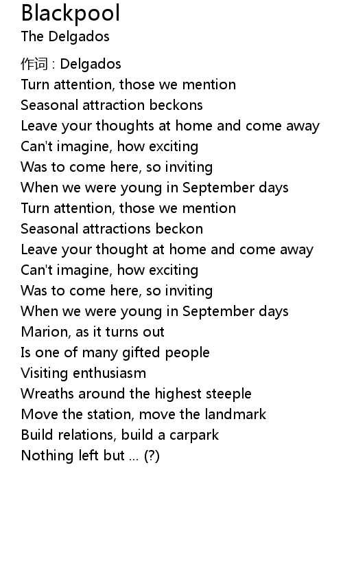 | 作词 : Delgados | |