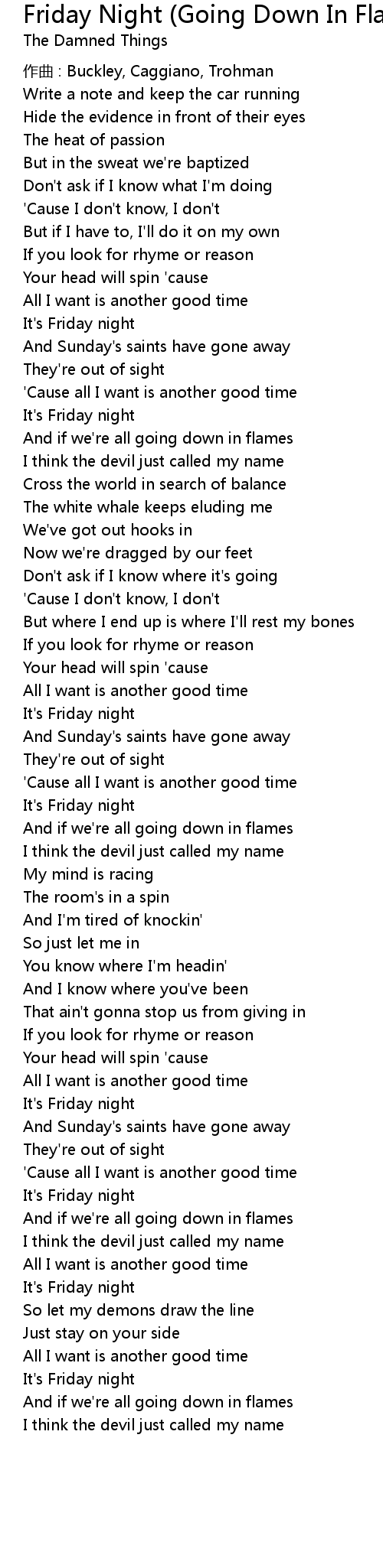| Song | Friday Night (Going Down In Flames) |