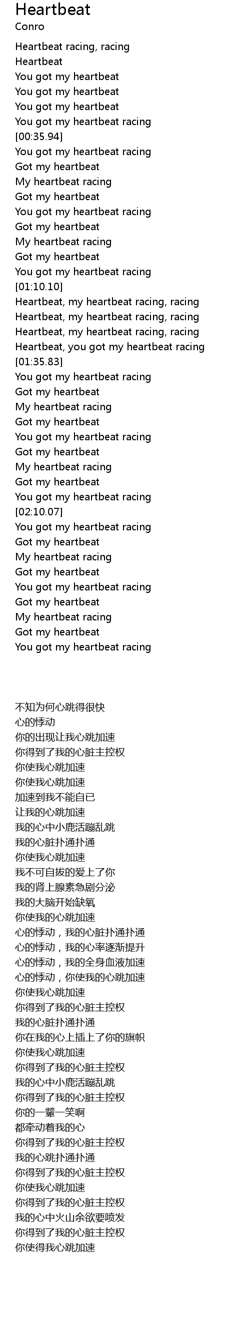 Heartbeat, my heartbeat racing, racing |