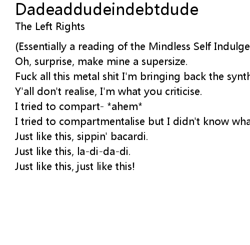 | (Essentially a reading of the Mindless Self Indulgence song "Like Shit") | |