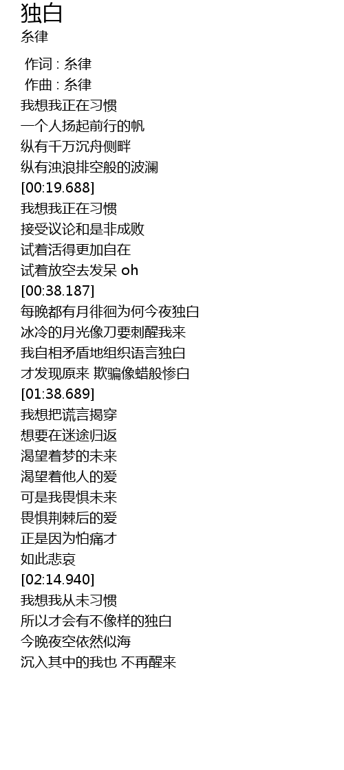 | [02:34.689] | 所以才会有不像样的独白 |