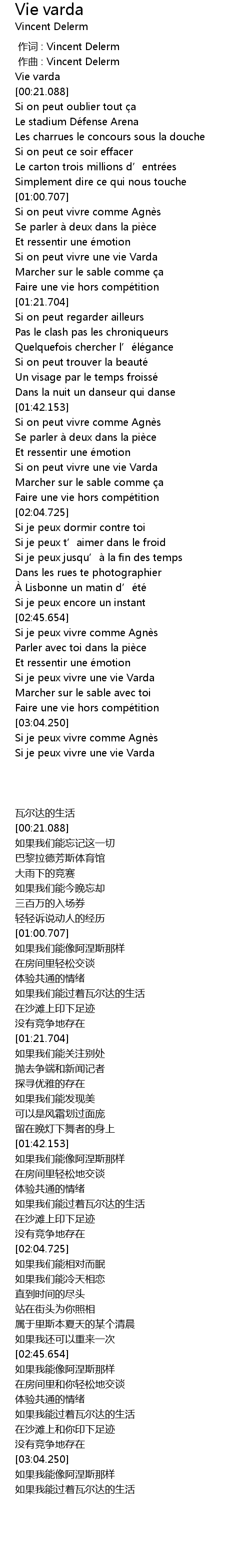 | [00:00.000] | zuò cí : Vincent Delerm |