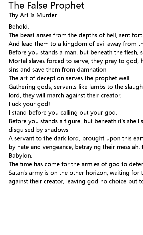Satan's army is on the other horizon, waiting for the horn, unholy crusade against their creator, leaving god no choice but to eradicate his own. |