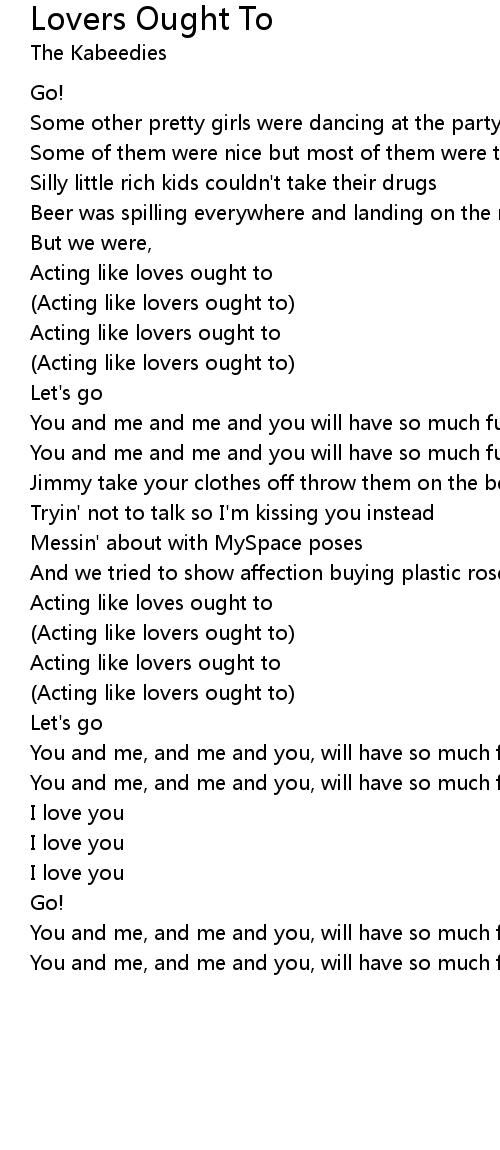 You and me, and me and you, will have so much fun, with you and me oh, |