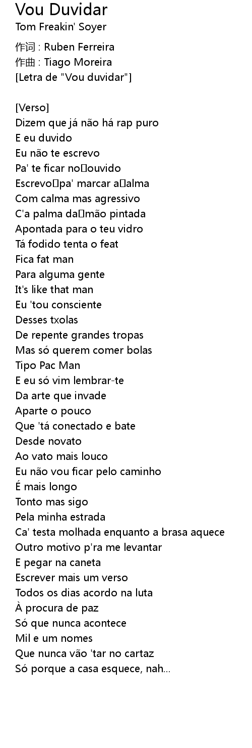 | [Letra de "Vou duvidar"] | |