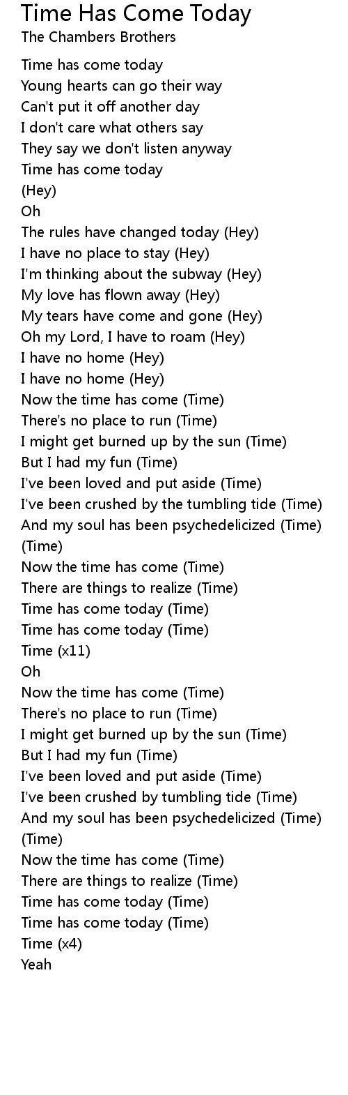 Time Has Come Today Lyrics
