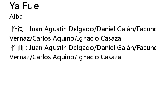 | [00:00.00-1] | 作词 : Juan Agustín Delgado/Daniel Galán/Facundo Vallone/Axel Vernaz/Carlos Aquino/Ignacio Casaza |