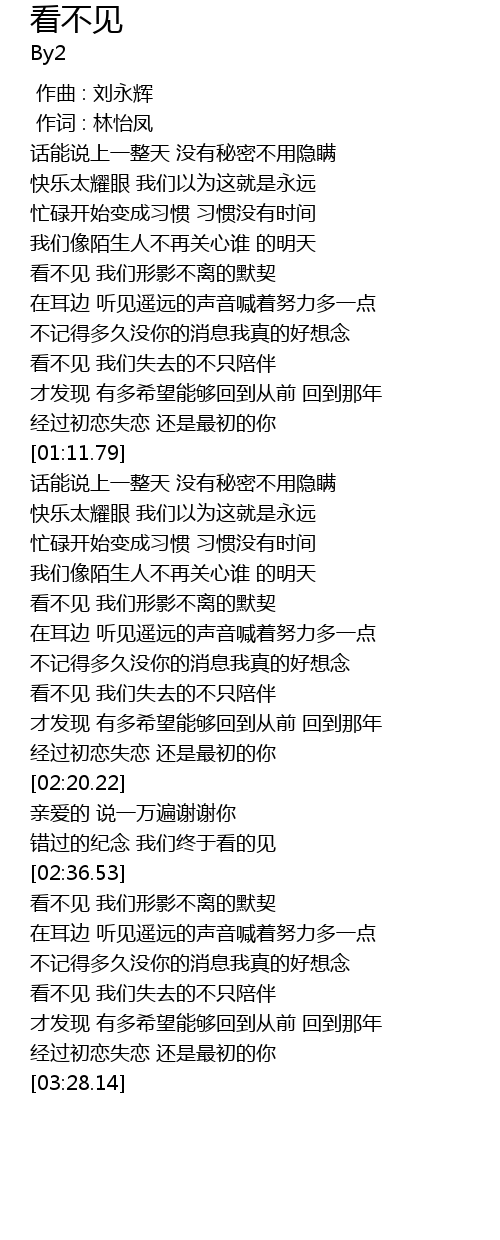 | [02:03.73] | 看不见 我们失去的不只陪伴 |