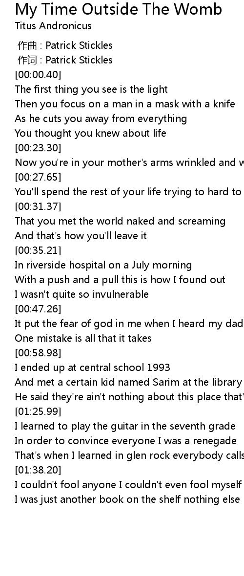 | Song | My Time Outside The Womb |