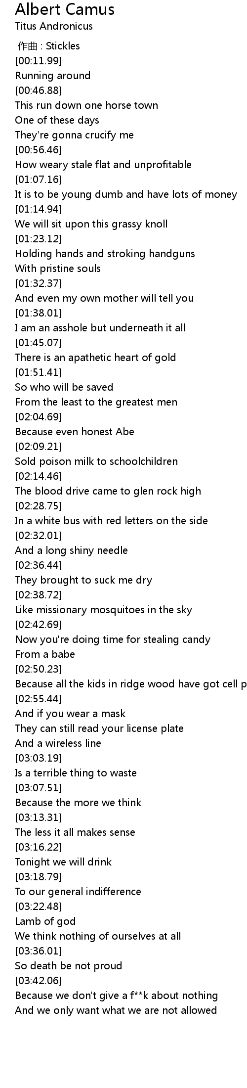 | [03:43.58] | Because we don't give a f**k about nothing |