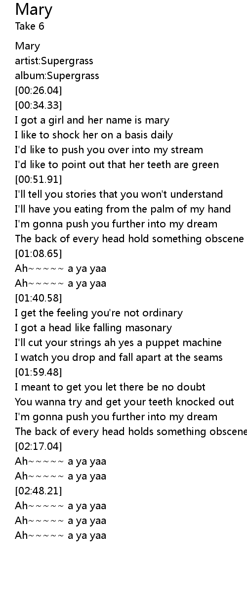 | [00:35.15] | I got a girl and her name is mary |