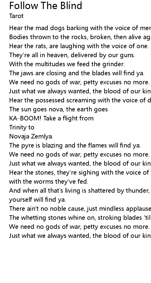 Just what we always wanted, the blood of our kind, blind follow the blind. |