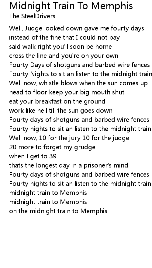 Fourty nights to sit an listen to the midnight train to Memphis |
