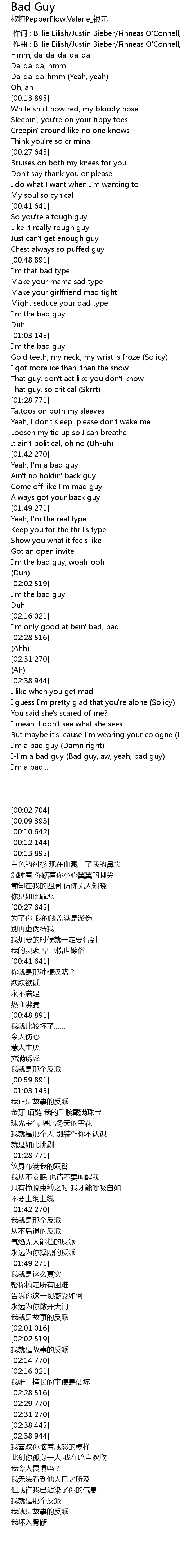 | [03:04.945] | I-I'm a bad guy (Bad guy, aw, yeah, bad guy) |