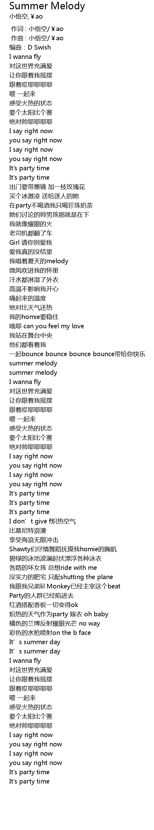 | [00:01.000] | 作曲 : 小悟空/¥ao |