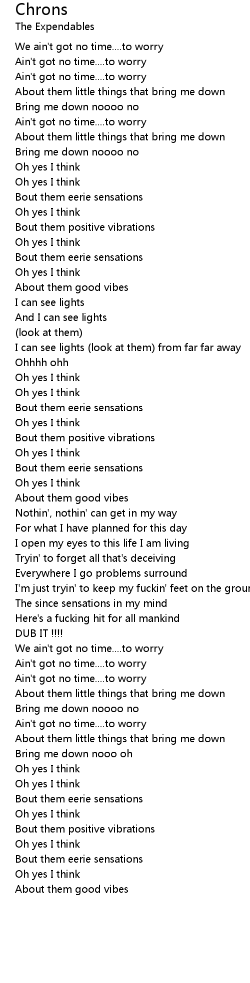 | We ain' t got no time.... to worry | |