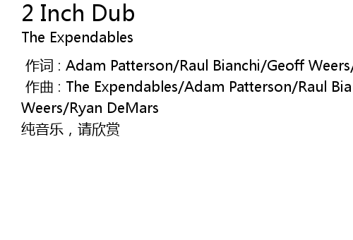 | [00:01.000] | zuò qǔ : The Expendables Adam Patterson Raul Bianchi Geoff Weers Ryan DeMars |
