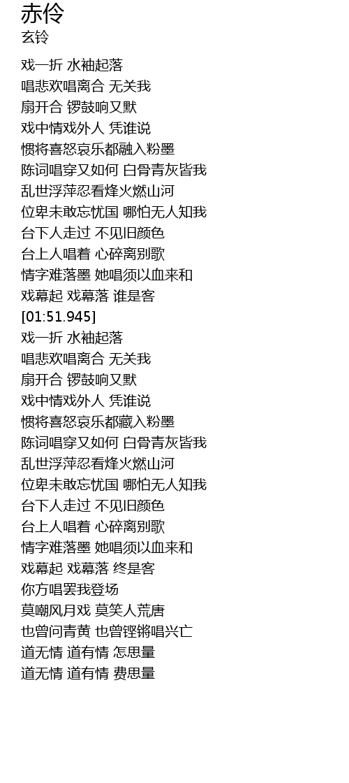 | [02:19.450] | 戏一折 水袖起落 |