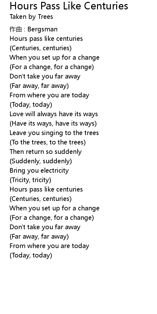 | Song | Hours Pass Like Centuries |