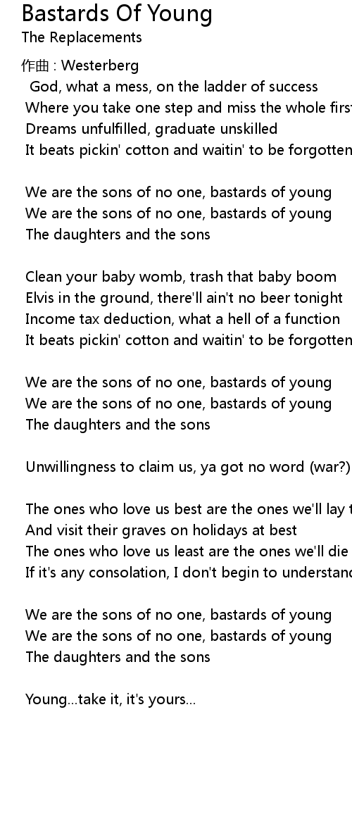 | It beats pickin' cotton and waitin' to be forgotten | |