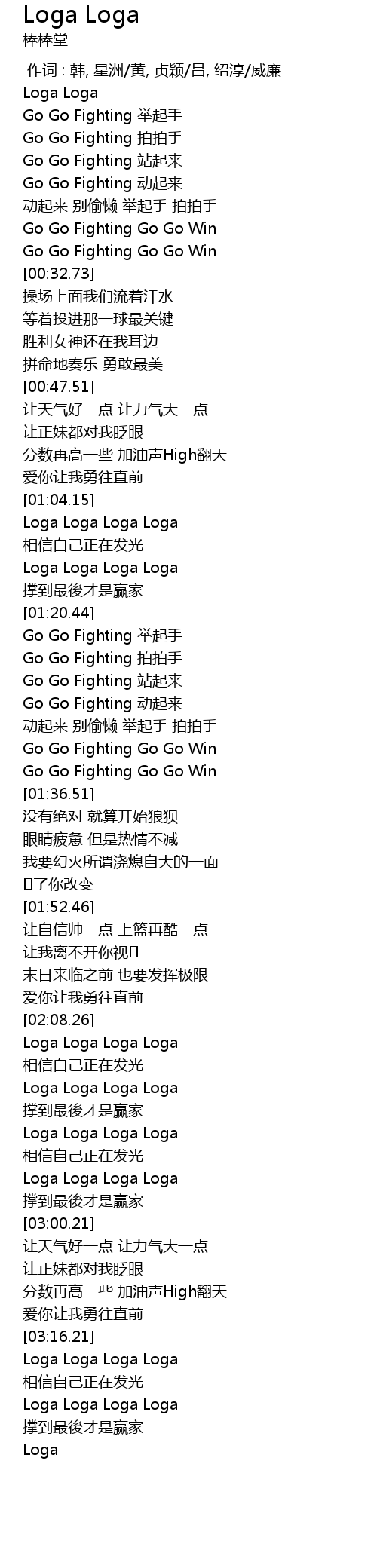 | [00:19.00] | Go Go Fighting 拍拍手 |