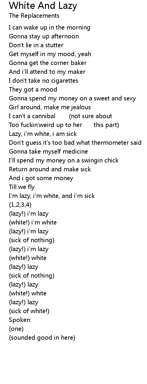 | Lazy, i' m white, i am sick | |
