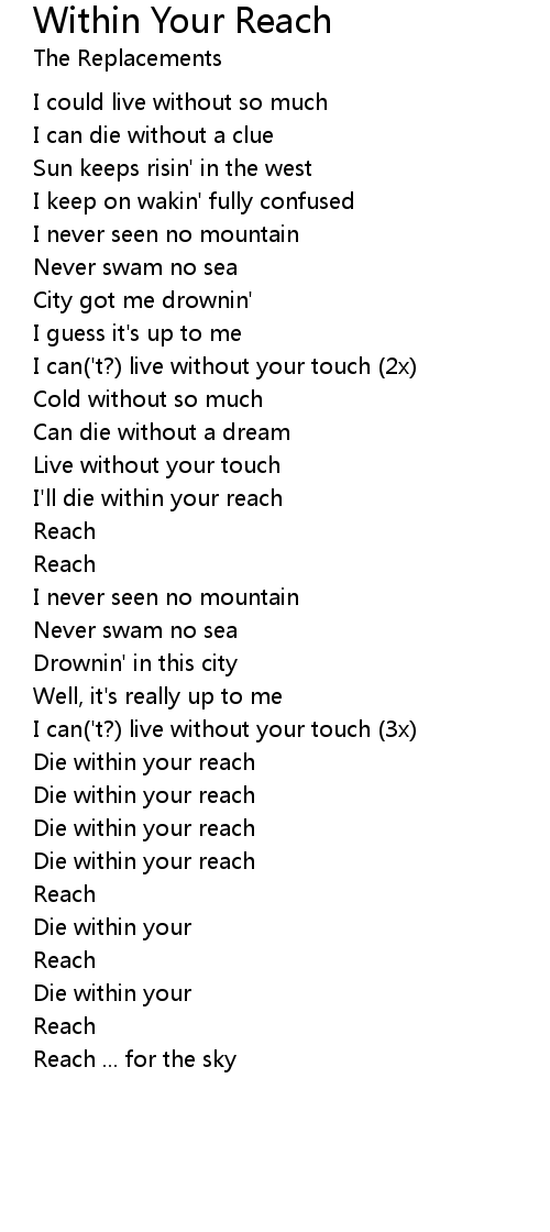 I'll die within your reach |