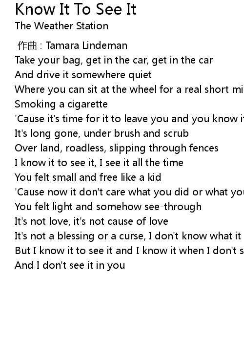 | Song | Know It To See It |
