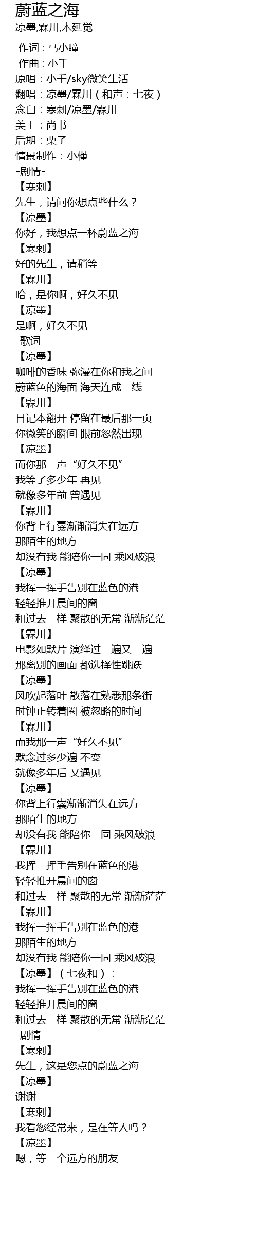 | [00:38.010] | wei lan se de hai mian hai tian lian cheng yi xian |