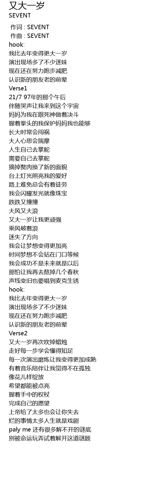 | [00:08.914] | wǒ bǐ qù nián biàn de gèng dà yī suì |