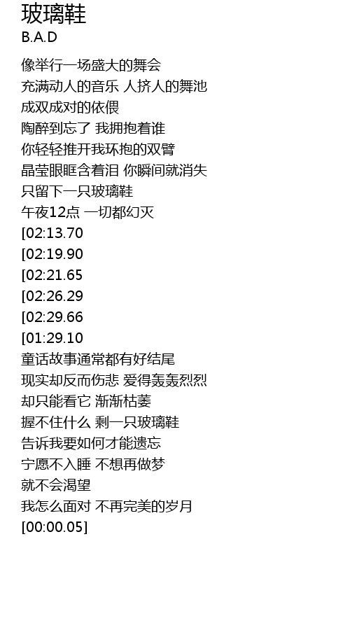 | [00:59.03] | 只留下一只玻璃鞋 |