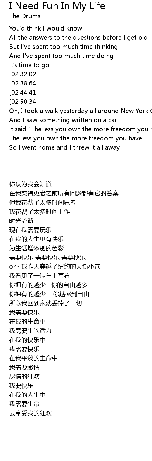 | [02:56.56][02:32.02][01:44.78][00:41.43] | And I need fun, fun, fun |