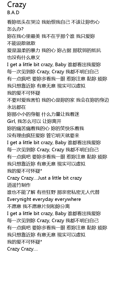 | [02:22.250] | mei yi ci jian dao nai Crazy, Crazy wo dou bu ming bai zi ji |