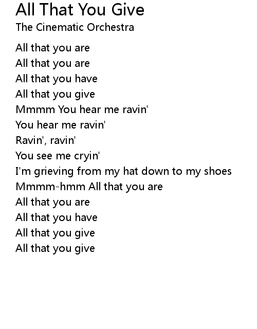 | All that you give | |