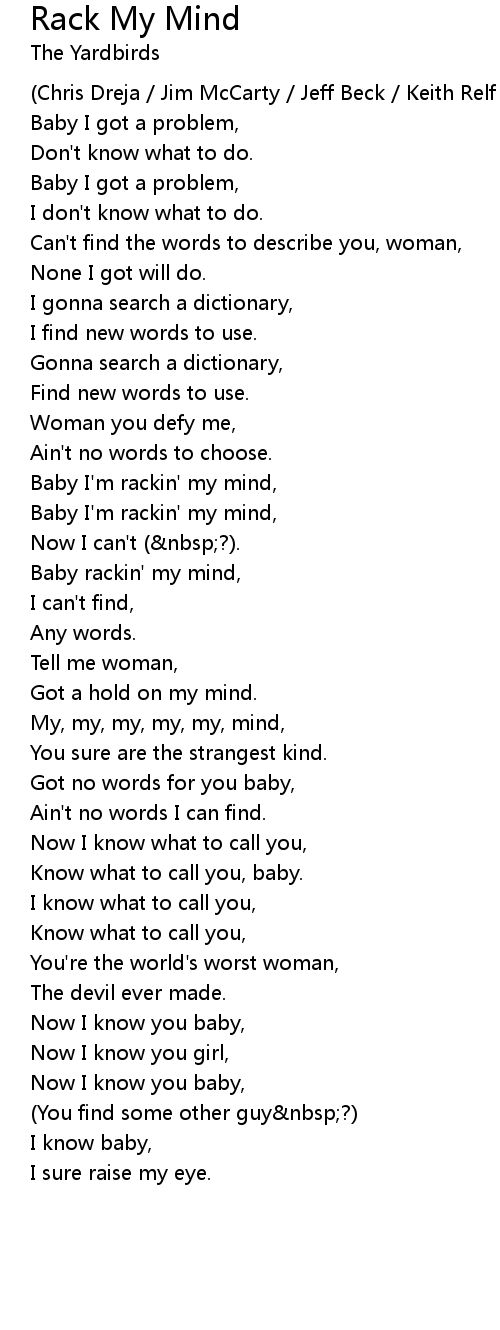 Baby I'm rackin' my mind, |