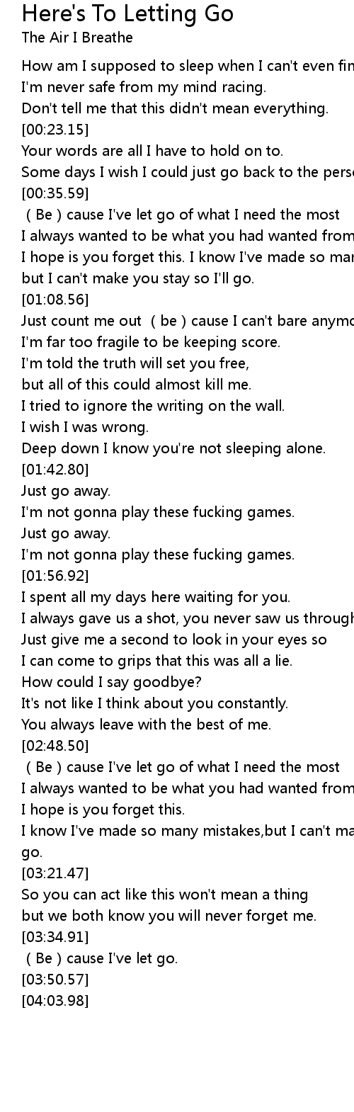 | [00:35.81] | (Be)cause I've let go of what I need the most |