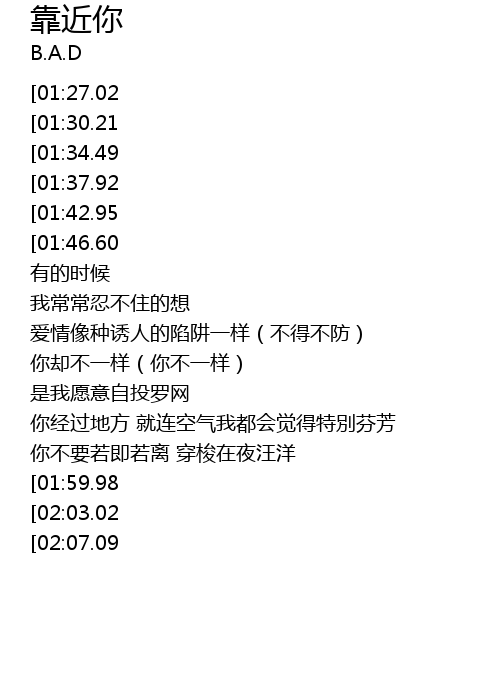 | [02:47.31][02:07.09] | 靠近你真的好难 |
