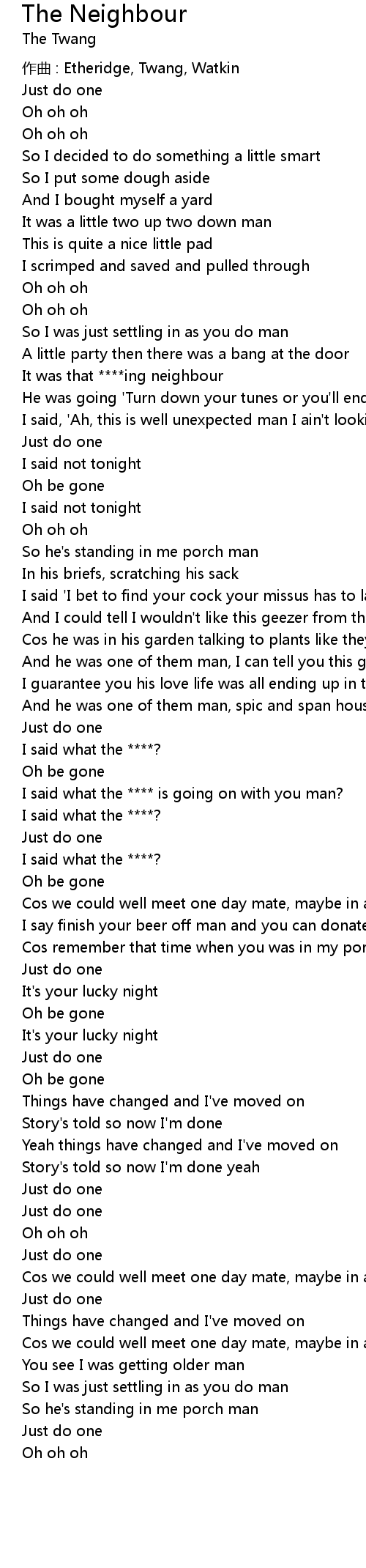 | It was that ing neighbour | |