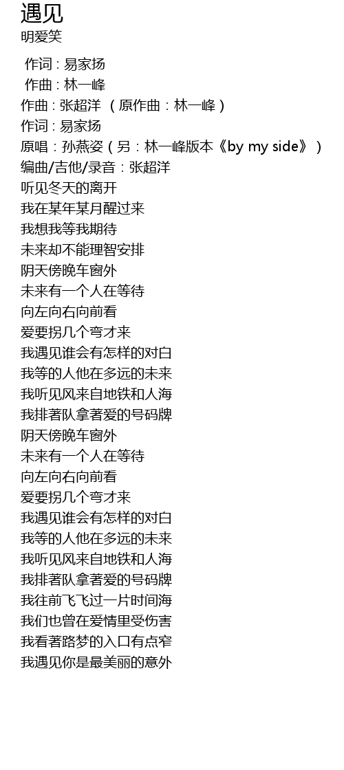 | [00:22.289] | 原唱:孙燕姿(另:林一峰版本《by my side》) |