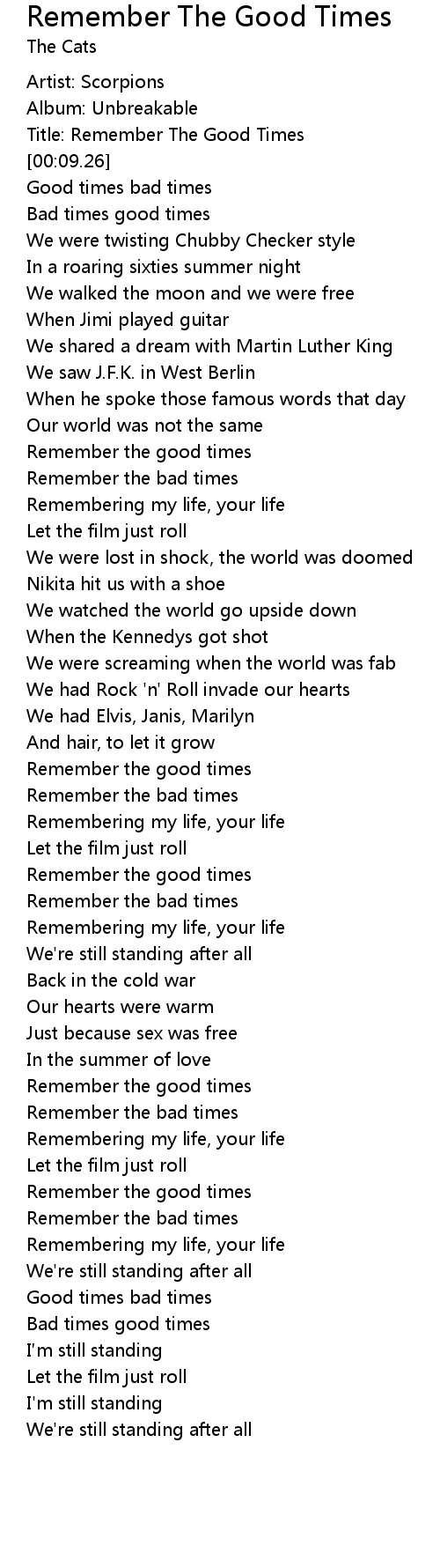 | [01:26.57] | We had Rock 'n' Roll invade our hearts |