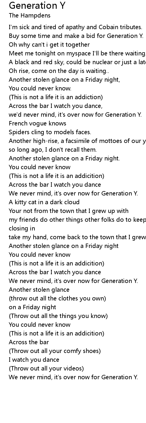 we'd never mind, it's over now for Generation Y. |