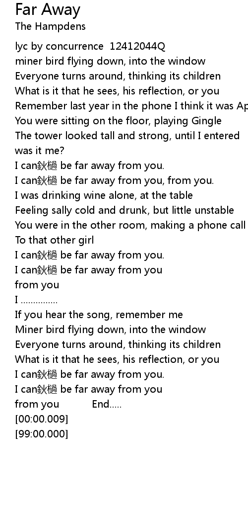 | [01:15.86] | I can鈥檛 be far away from you, from you. |