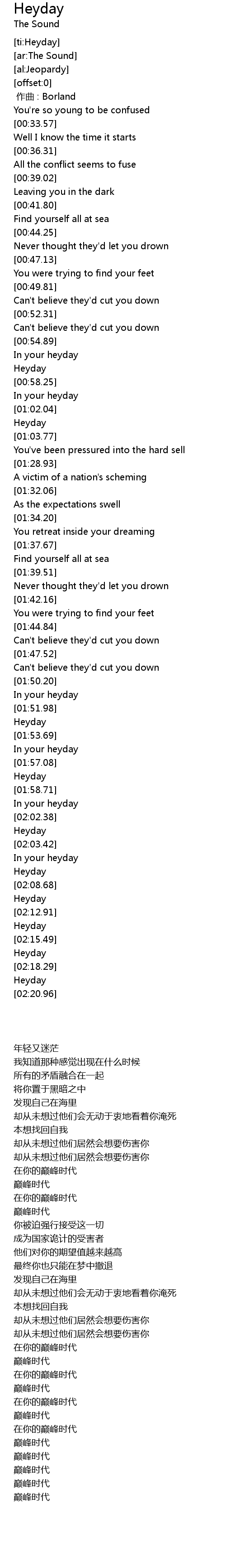 | [02:03.04] | Heyday |