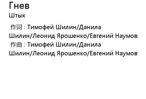 作曲 : Тимофей Шилин/Данила Шилин/Леонид Ярошенко/Евгений Наумов