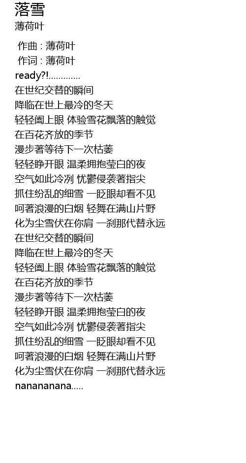 | [00:00.00] | 作曲 : 薄荷叶 |