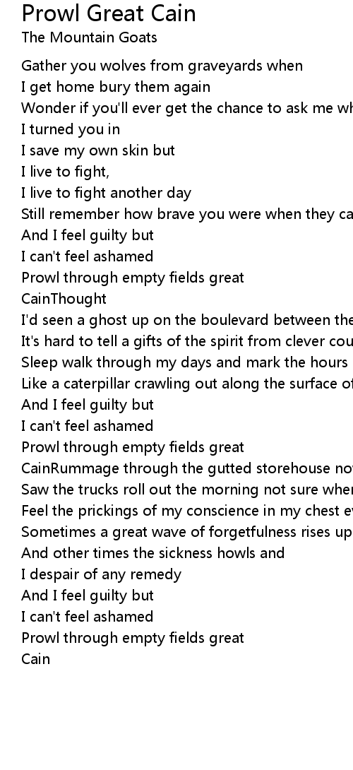 CainRummage through the gutted storehouse now and lick the sweat from my brow |
