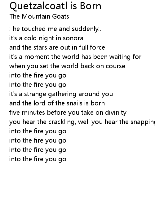 | Song | Quetzalcoatl is Born |