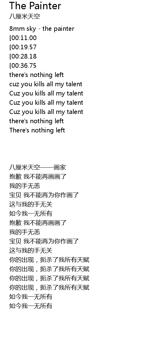 | [00:02.40] | 8mm sky - the painter |