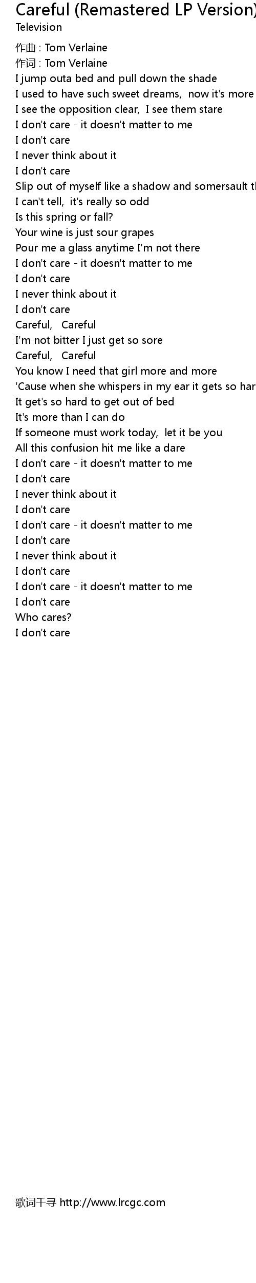 | [00:31.55] | I don' t care |